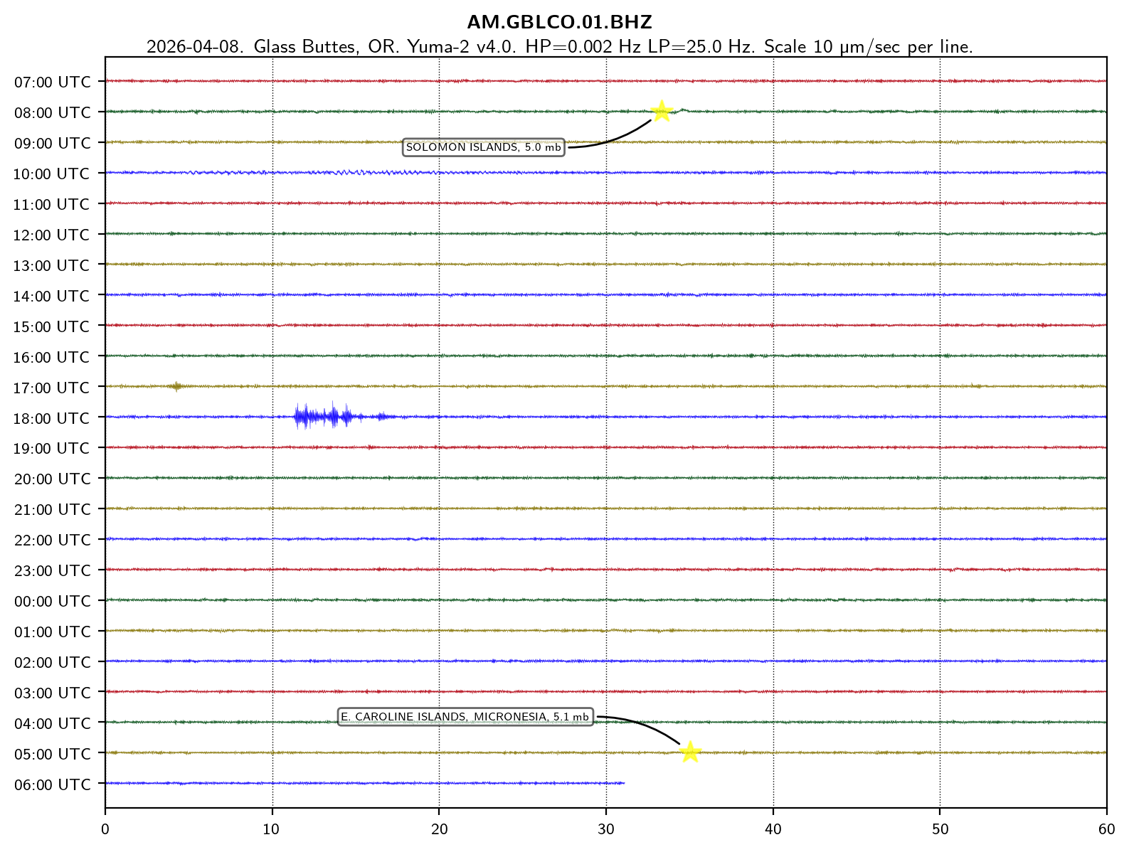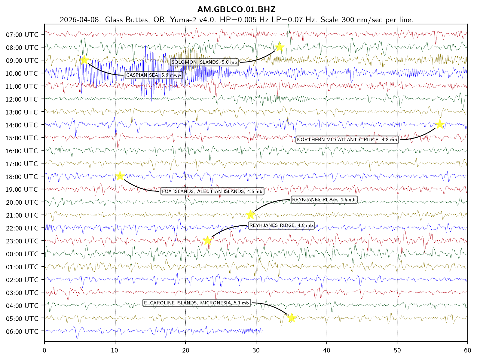 Teleseismic helicorder